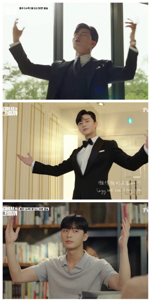 自戀的男主角英俊, 常常說自己是完美的男人, 經常擺出這招牌動作, 顯示他浮誇自戀的一面。🤣🤣🤣