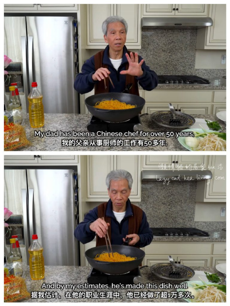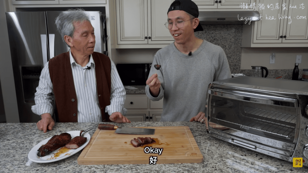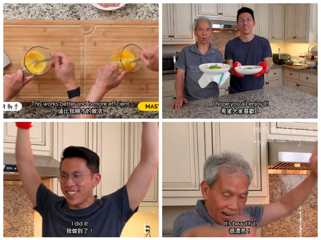 好了, 先介紹一下人物。主角是一位移居美國多年的退休中廚劉爸(因為影片中兒子都會喊「Dad」, 所以請容許我稱劉老先生為「劉爸」), 和兒子Randy。每條影片後面, 他們的家庭成員都會現身試吃。