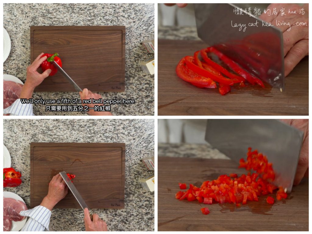 由一整顆紅椒切成細丁都如此詳細, 新手也容易掌握。