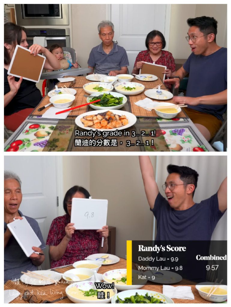 Randy 在劉爸的指導下, 做好了蒸蛋, 看父子倆多興奮。