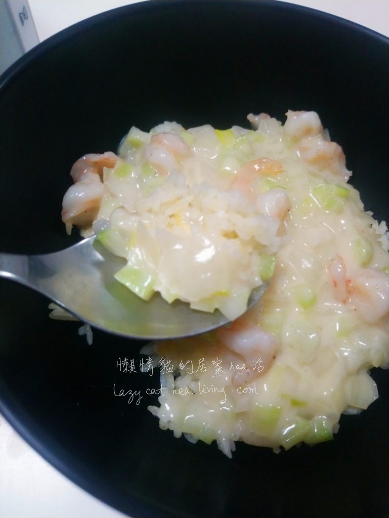 上回做了「太極鴛鴦炒飯」的紅色飯 (蕃茄雞絲炒飯), 這回我們來做白色飯吧! 白色那邊都是醬汁蓋著蛋炒飯, 只是那醬汁改成白醬, 換成蝦仁和菜梗而已。坊間通常會採用菜心或芥蘭的菜梗來做這白汁蝦仁飯, 可是懶惰貓不愛吃菜心和芥蘭啊, 所以平常都不會買這兩種蔬菜呢!