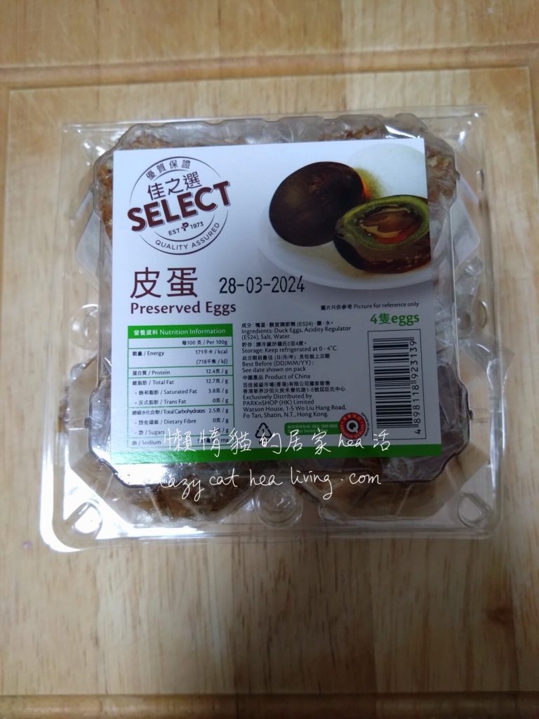 這是百佳的皮蛋, 表面看跟菜市場買的差不多啦, 哈哈。