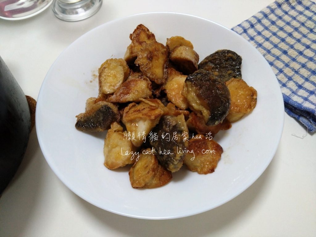 由於蛋液裡已經有下調味料, 所以這杏鮑菇表面已經是有味道了, 而且愈吃愈涮嘴呢! 甚麼沾醬都不用沾, 只要我端上這道菜, 在半頓飯的時間, 整碟就會吃光光。✌️
