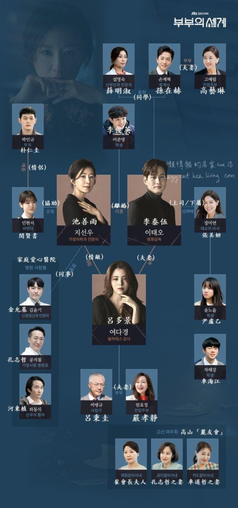 由於人物眾多, 我不一一介紹了, 直接借用JTBC 劇集官網上的人物關係圖解說一下。