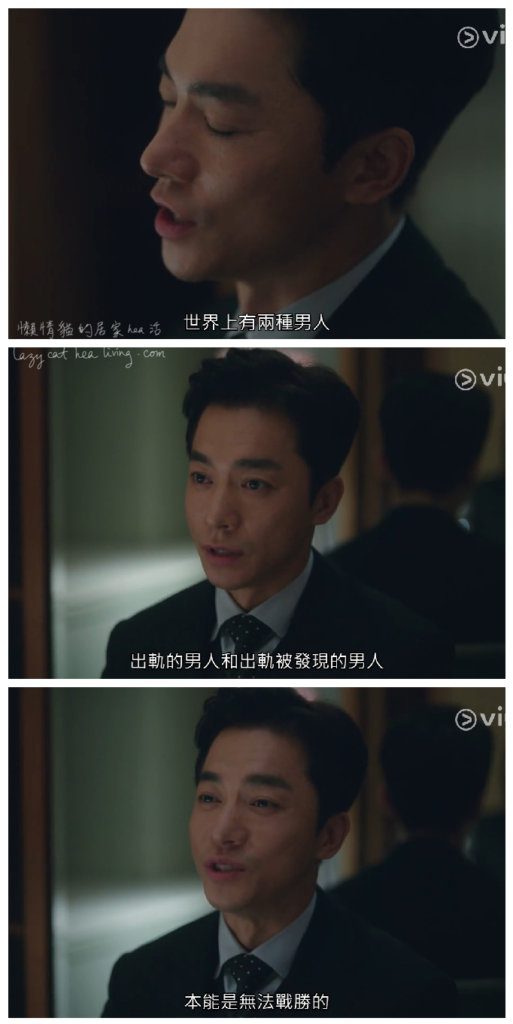 早在開首兩集, 賤男李泰伍跟舊同學薛醫生外出, 早已知道他外面有小三的薛醫生建議他快跟小三分手, 賤男竟然說: