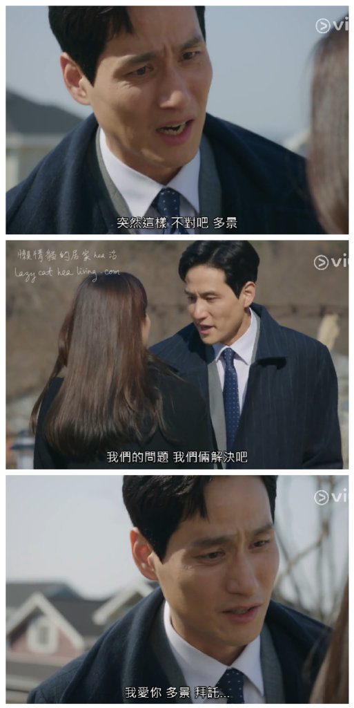 最後多景揭發他只是把她當作前妻的替代品, 泰伍知道自己快一無所有, 仍然不道歉, 就祭出「我愛你」的情話。當然一切已太遲了。看到這裡, 令人拍手叫好, 多景終於都從「好天真好傻」的境界中升級了。