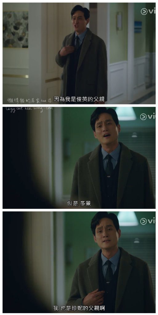 他強調自己也是多景的女兒珍妮的生父。明明是自己惹禍上身, 還一副理所當然的樣子, 認為妻子應該要動用財力救他的樣子, 惡人先告狀! 你們說他賤不賤啊?