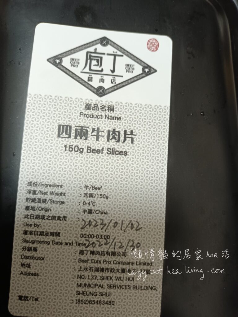 我是31/12/2022 收貨的, 食用期限是 2/1/2023, 真的就只有兩天食用期限。跟冰鮮的豬肉和雞肉比較, 牛肉真的不耐放啊。😅