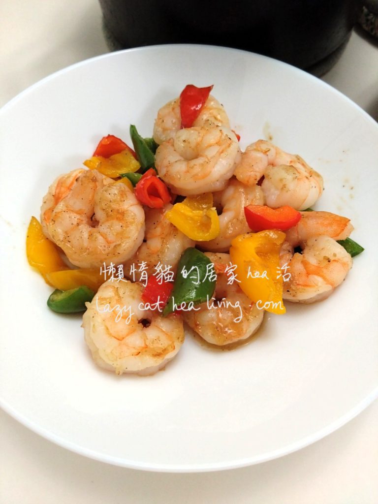對於懶人來說, 急凍蝦仁絕對是很好用的食材。買回來已經是剝好殼, 部份更已經去腸泥, 只要解凍就能使用。另外蝦仁也很百搭, 配蔬菜甚麼的都好吃啊。所以兩個星期以前懶惰貓才介紹過翠玉瓜炒蝦仁, 今天我又介紹另一道蝦仁的料理 — 彩椒炒蝦仁。