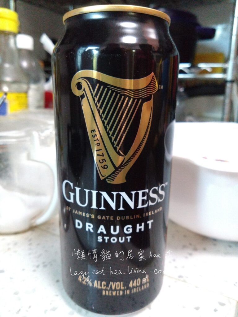 這就是另一名主角 — 黑啤! 我個人強烈建議使用「健力士」(Guinness) 的, 因為這道菜又叫做「Guinness Beef Stew」或「Beef and Guinness Stew」, 當中的「Guinness」就是指這個愛爾蘭的啤酒品牌啊。要做出愛爾蘭風味, 當然是「忠於原著」, 使用健力士的黑啤吧。