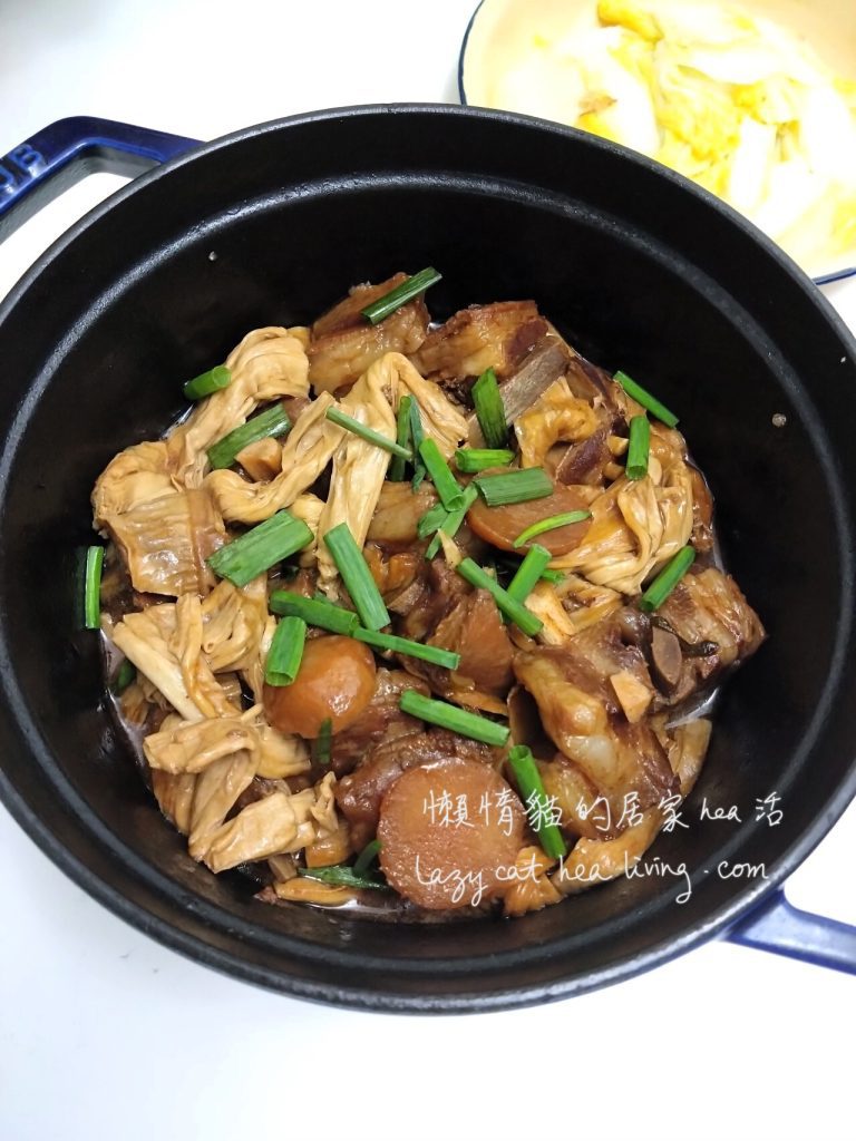 本來我是使用乾貨的枝竹, 後來發現hktvmall 有商戶在售賣急凍的鮮腐竹, 不用解凍不用處理, 一打開就可以直接下鍋煮, 所以我把枝竹換成這種急凍的腐竹了。