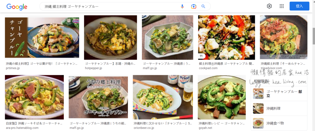 話說懶惰貓在三個月以前, 寫了一篇「苦瓜午餐肉炒蛋」的文章, 我在副標題寫上「偽沖繩風」, 但其實我做的只是把苦瓜、午餐肉一起煎蛋啊, 而且賣相也沒有沖繩風可言。然而, 搜尋引擎Google 卻把那篇文章排到搜尋「沖繩苦瓜午餐肉炒蛋」的首五個搜尋結果裡, 讓我受寵若驚又慚愧。