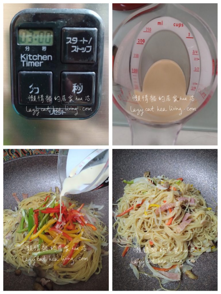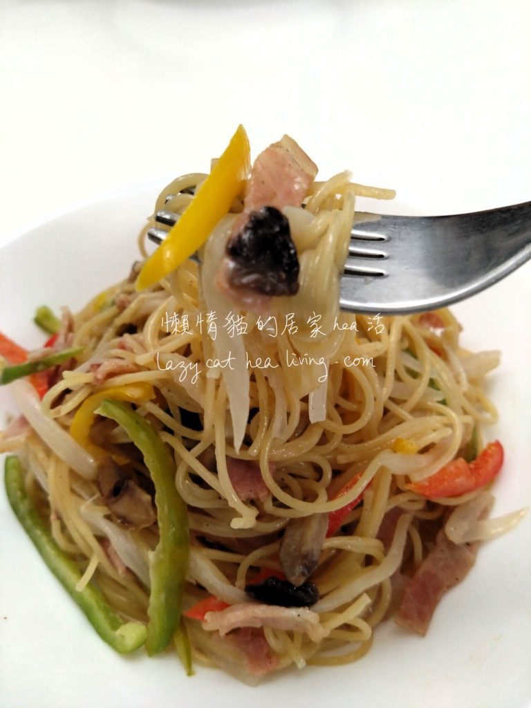 各位上班族, 有留意有關颱風「杜蘇芮」的消息嗎? 聽說它已升級為強颱風, 並且預計在星期四或五比較接近香港。屆時會不會懸掛八號風球, 懶惰貓當然不知道啊, 但是肯定天氣一定會變得很惡劣, 正所謂「打風不成三日雨」嘛。颱風天買菜很不方便, 所以現在預早準備就對啦。今天我想分享一道和風洋食的炒意粉, 非常方便, 一鍋到底就可以做好, 而且材料也可以預先網購喔, 趁這兩天先購買食材, 就不怕颱風來襲了。😸