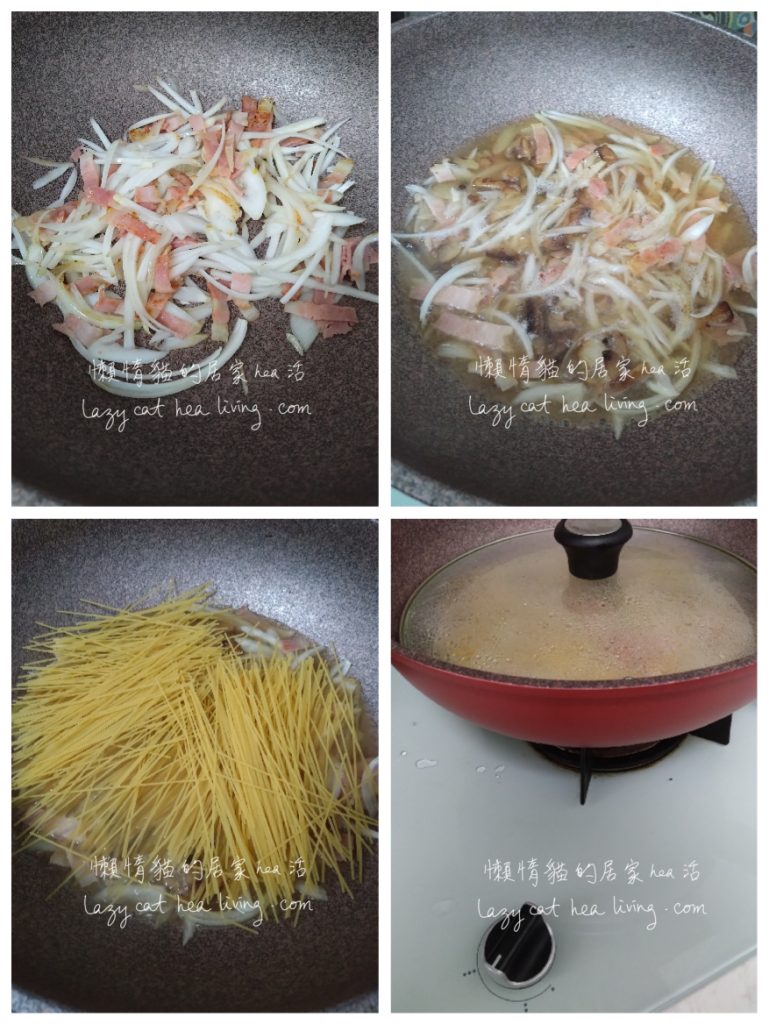 - 鍋子下一點油, 把煙肉以中小火略為煎香。