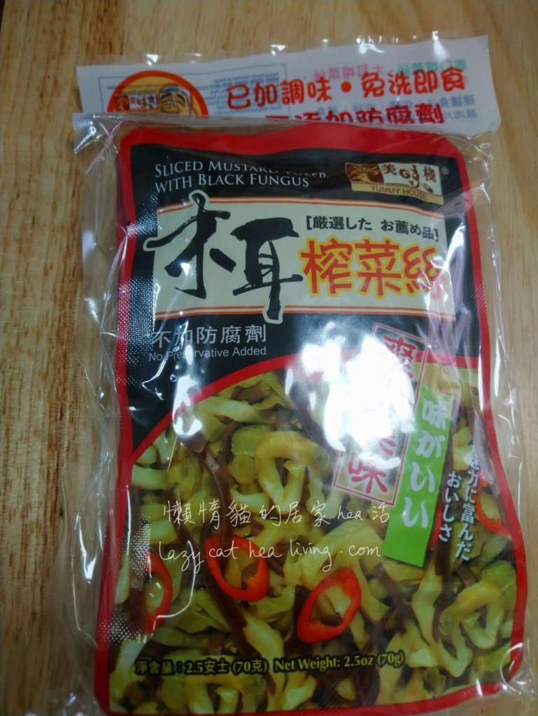 這是即食的榨菜木耳絲, 帶一點點微辣。其實他家也有另一款即食榨菜絲, 沒有木耳的, 是完全不辣。但是我覺得一包同時吃到榨菜和木耳, 感覺比較豐富啊。