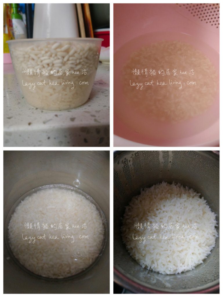 - 白米 半米杯 (*因為怕吃太多糯米會脹氣, 我才混合一半白米。如果想全部用糯米, 這部份也可以以糯米取代。)