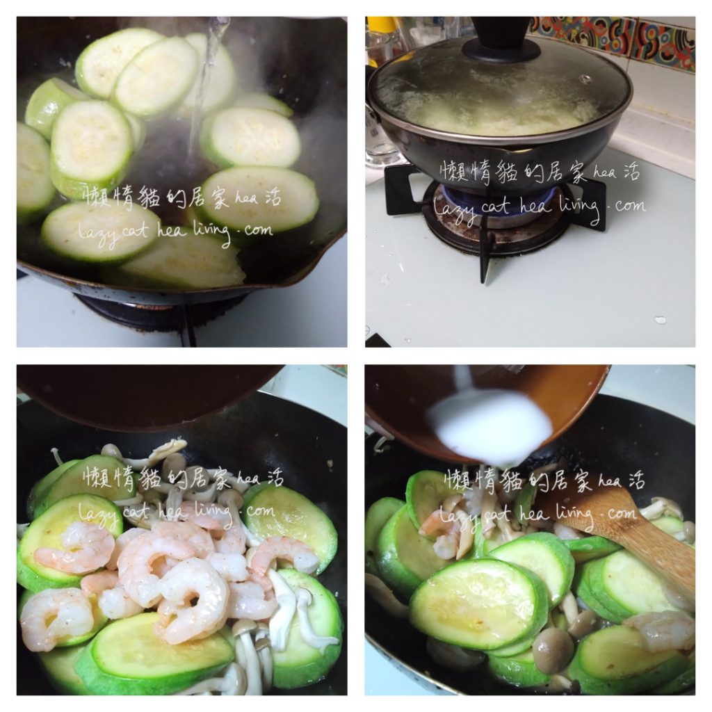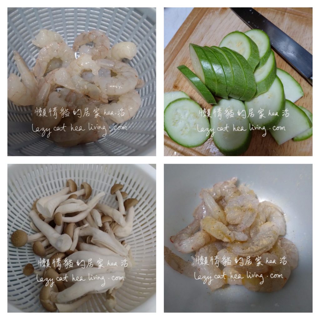 這一道的翠玉瓜、本菇, 都不會說需要浸泡很久, 很難清潔, 需要很多前置作業之類的, 所以很省時間和功夫。