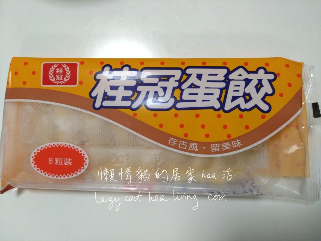 這就是今天的主角 — 蛋餃了! 這是「桂冠」的蛋餃, 之前我也介紹過他家的抹茶湯圓了。