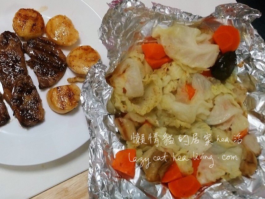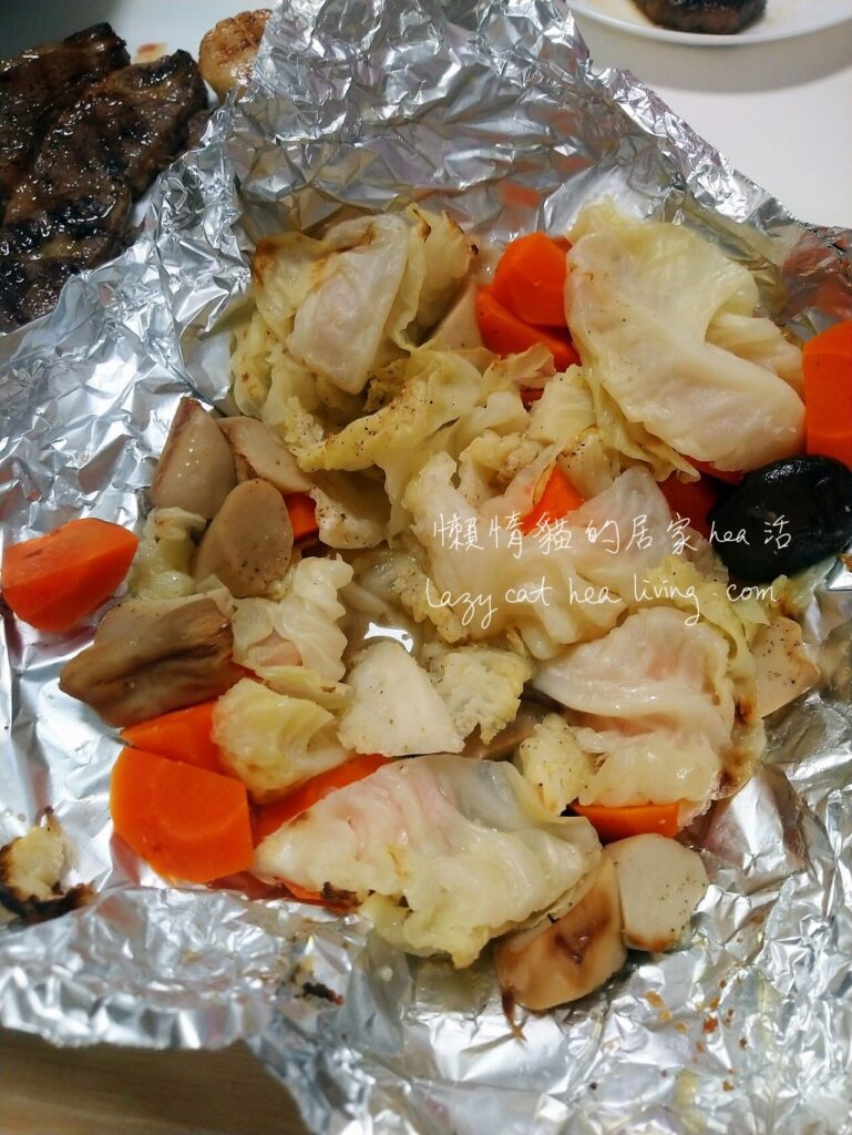 抱歉, 因為最近有點忙, 剛剛週末沒有更新網誌。😅下星期二就是情人節嘍! 如果還沒有在餐廳訂位, 兩口子在家裡下廚, 吃頓燭光晚餐, 也可以很浪漫喔。燭光晚餐, 最基本的一定是煎牛排吧。怎麼煎牛排, 懶惰貓說不上是專家啦, 但是每次吃牛排, 都總需要一點配菜對不對? 今天我想介紹一道, 只要有焗爐(烤箱)和錫紙(鋁箔紙), 就可以輕鬆搞定的一道配菜 — 錫紙烤雜菜。只要把食材準備好, 拌一拌, 以錫紙包好, 丟進烤箱就好了。✌️
