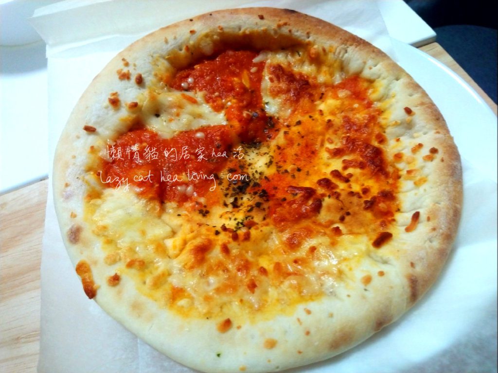 最後一款, 是蕃茄醬加上芝士的Margherita 薄餅, 而且薄餅的圍邊竟然有芝士內餡! 即食薄餅做到「芝心批邊」我也是第一次見。