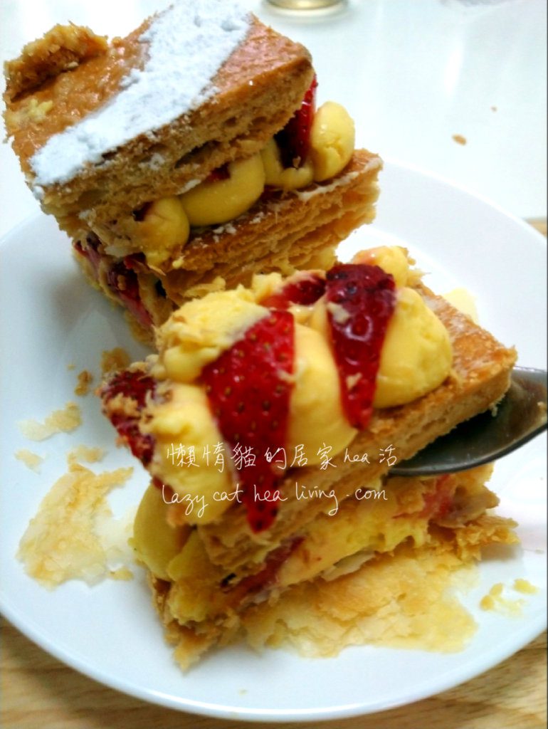 (因為我認為拿破崙酥餅整個都是酥皮造的, 根本就不是蛋糕啊, 下面我會省略「蛋糕」兩字。)