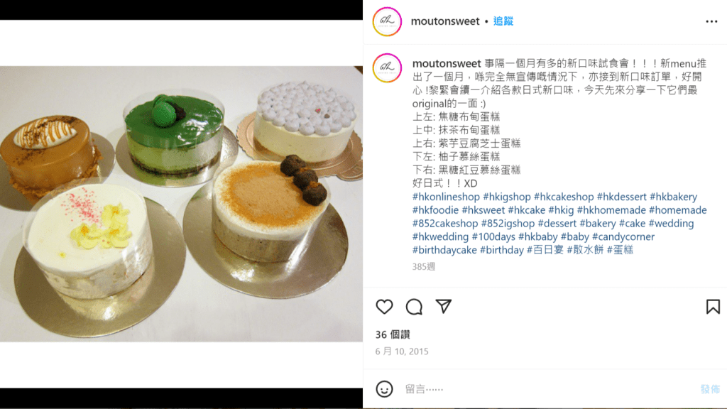 蛋糕我之前介紹過兩家, 分別是「Mouton Sweet」💛(下稱「MS」) 和「瓜破菓子店」💛, 兩家的蛋糕都做得不錯, 但是我家人好像對前者的興趣比較大一些。於是過去大半年, 我們又訂購了兩次他家的蛋糕了。