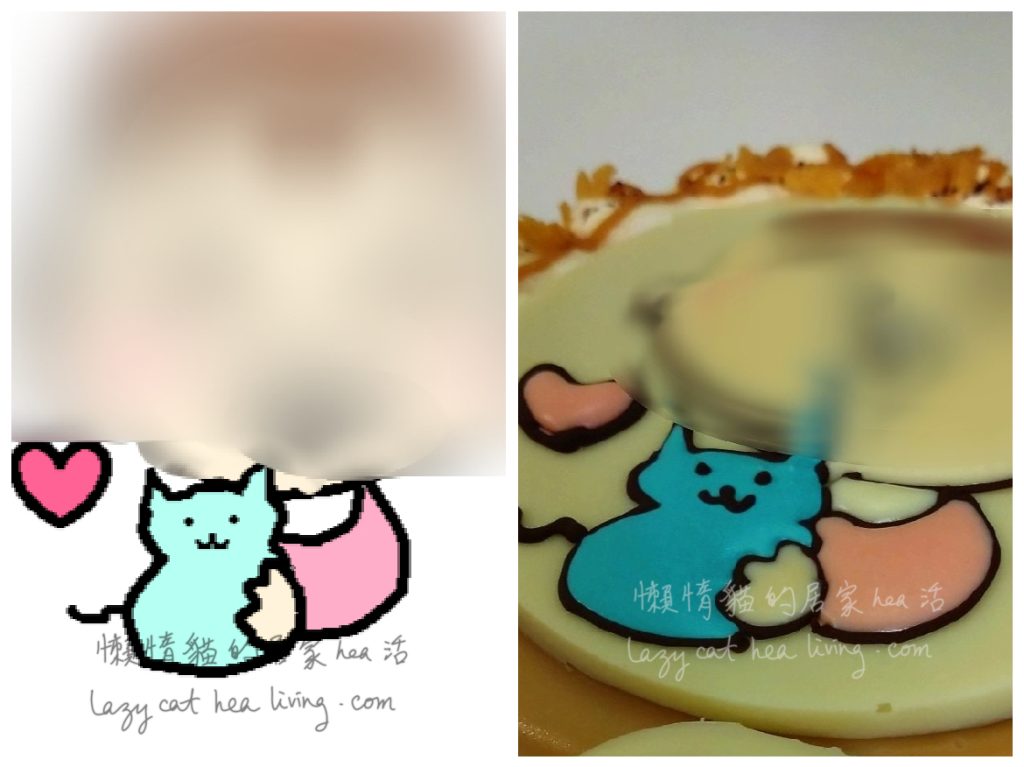 一定一定要有設計圖檔喔, 否則店家是不願意報價的。畫功不精的我, 就在網路上參考了一些簡單的圖案, 然後自行在「小畫家」畫了 很醜 很簡單的圖檔。(這就是我把蛋糕圖案部份模糊化的原因啊, 原諒我畫功太差, 不想獻醜了。😅😅😅)